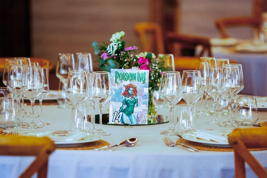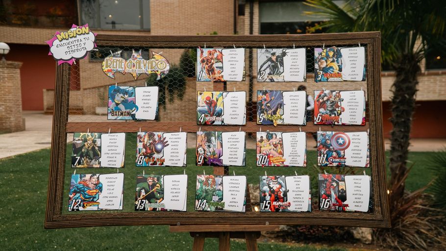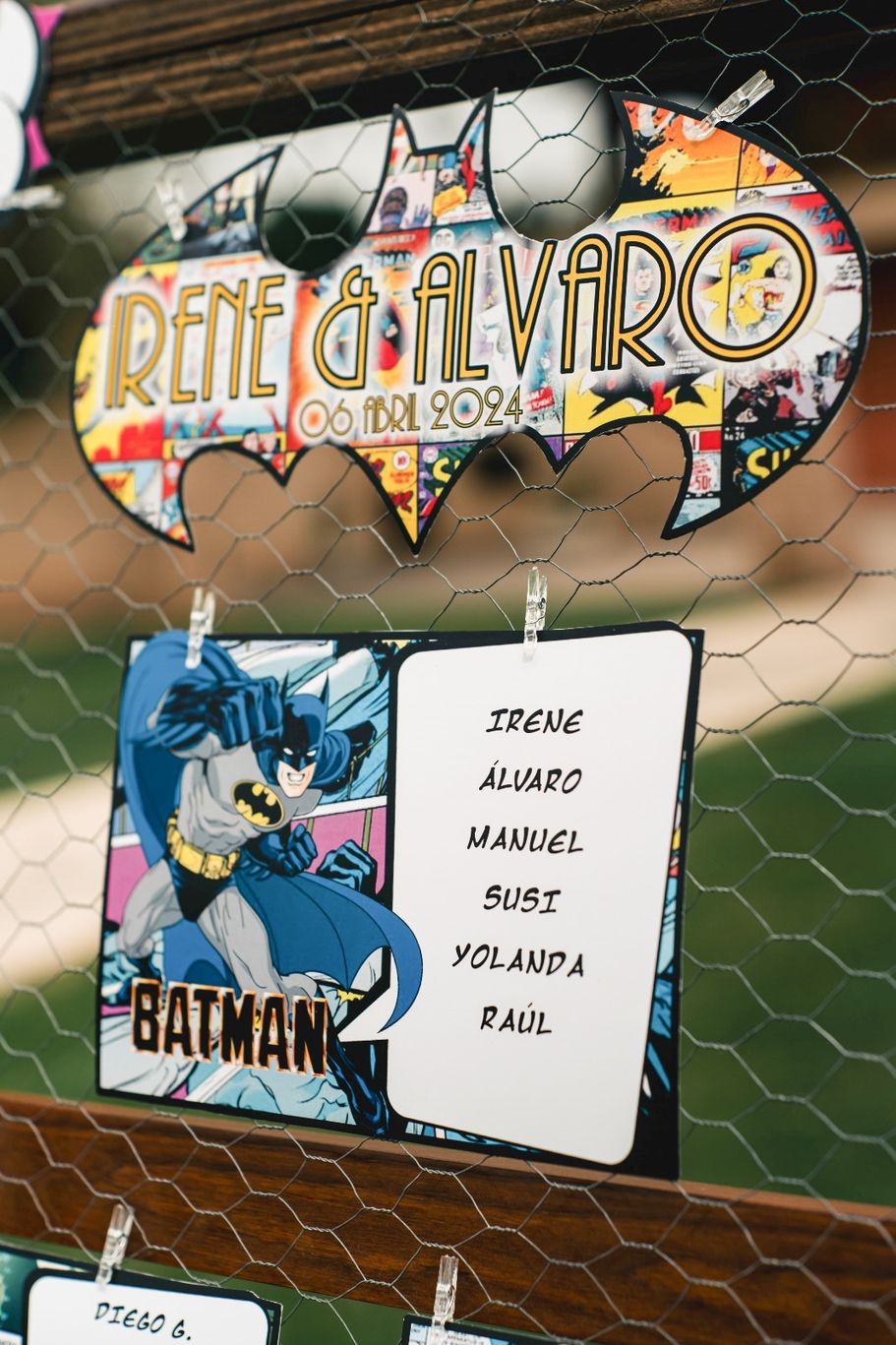 Irene y Álvaro querían una boda que sus invitados recordaran para siempre, y decidieron mezclar el universo de Marvel junto con el de DC Comics para tematizar su boda en Superhéroes y Villanos.