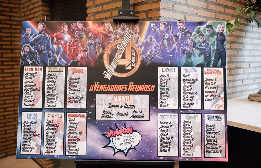 Raquel & Sergio querían una boda única y original, y decidieron sorprender a todos sus invitados con una boda inspirada en el Universo de Marvel y sus Superhéroes.