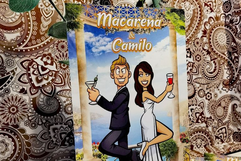 Macarena y Camilo querían unas invitaciones de boda originales pero clásicas, no querían una temática en concreto pero quería que fueran divertidas y así surgieron unas invitaciones diferentes y únicas.