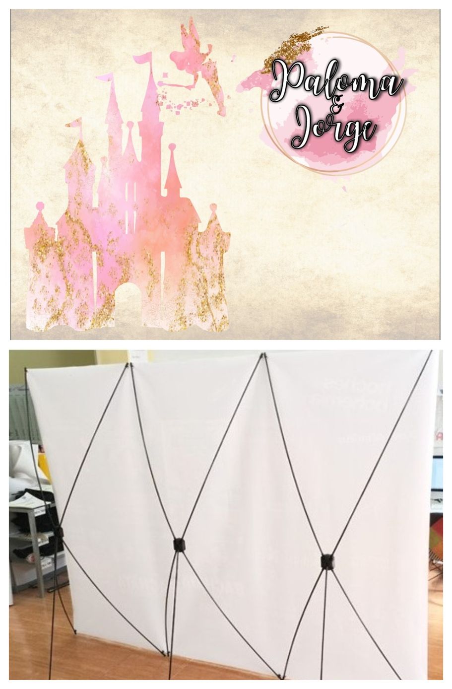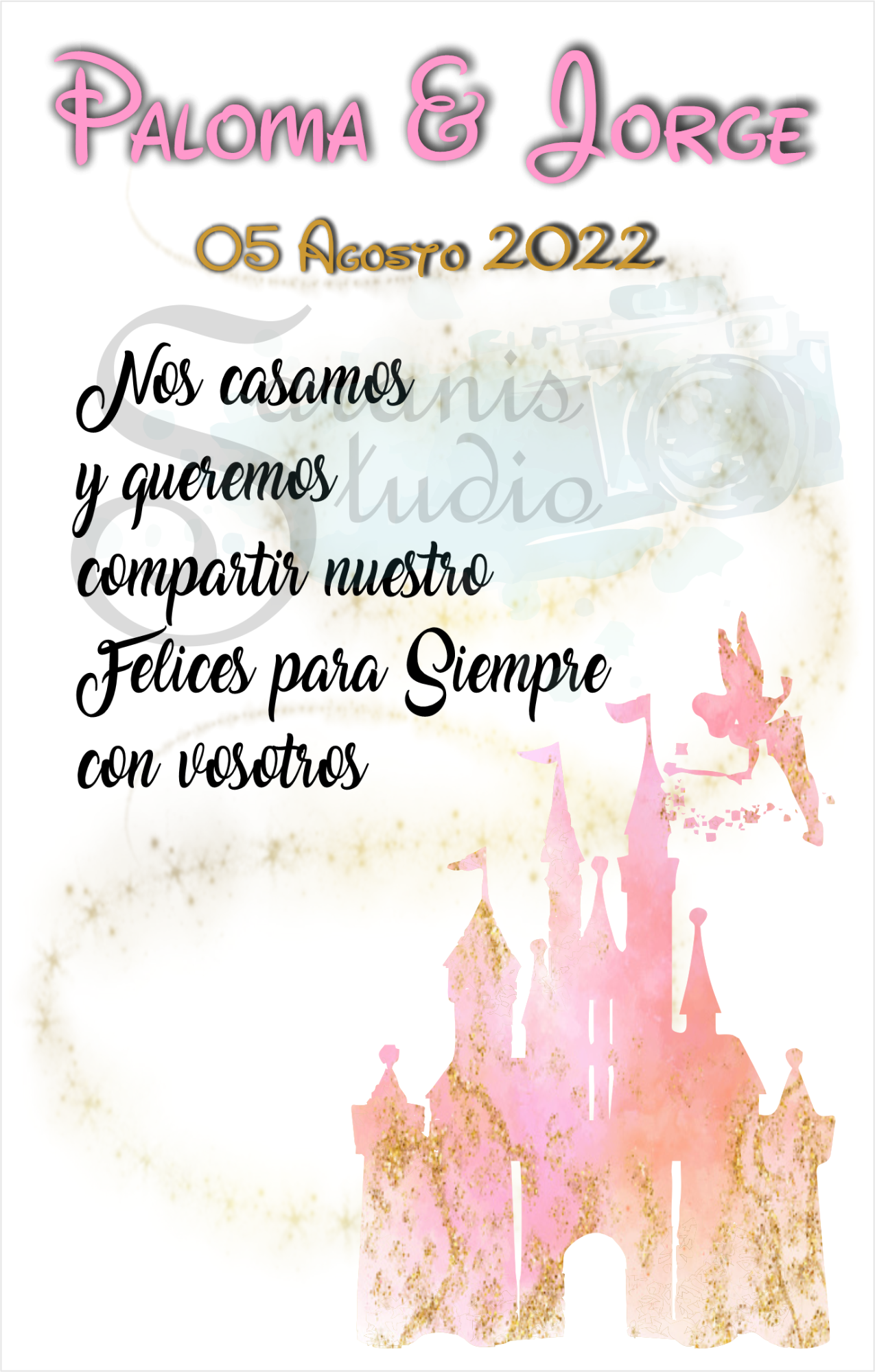 Un diseño único en color rosa y dorado, para darle un toque romántico y dulce a la magia de Disney.