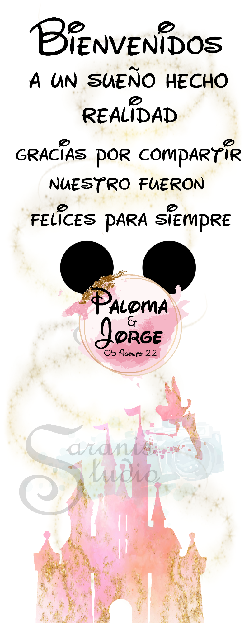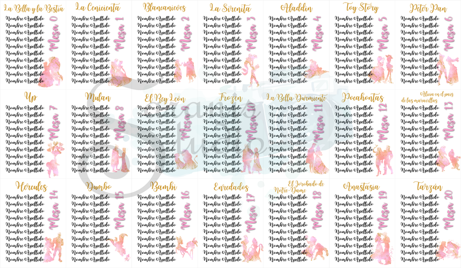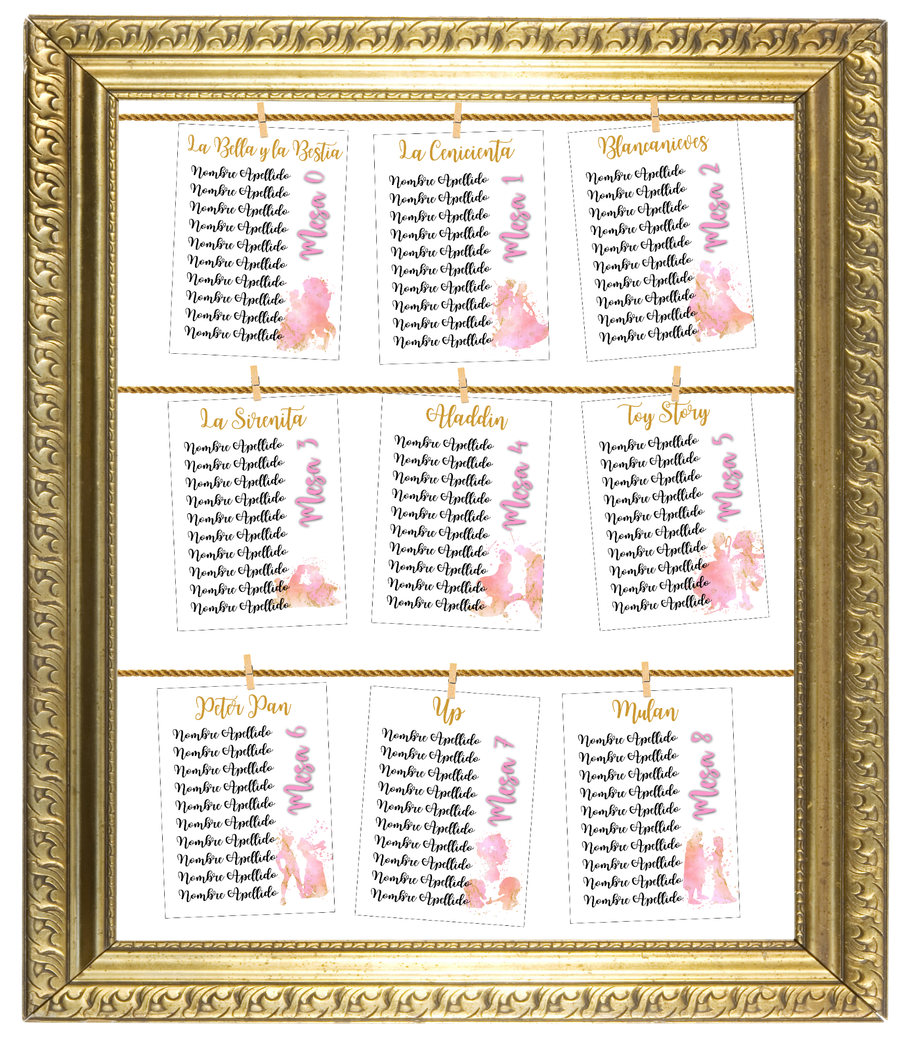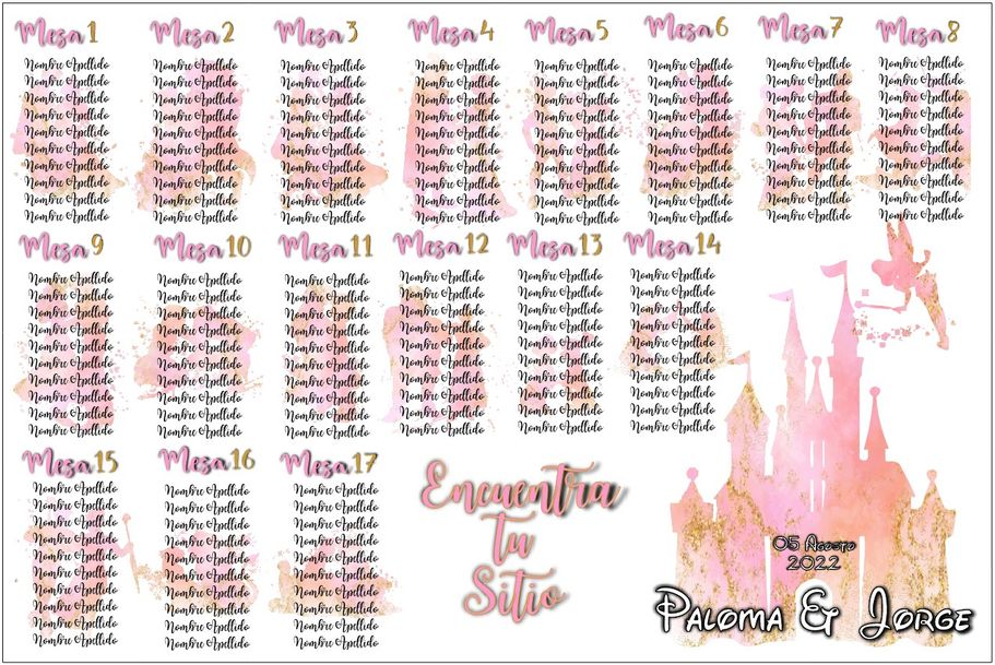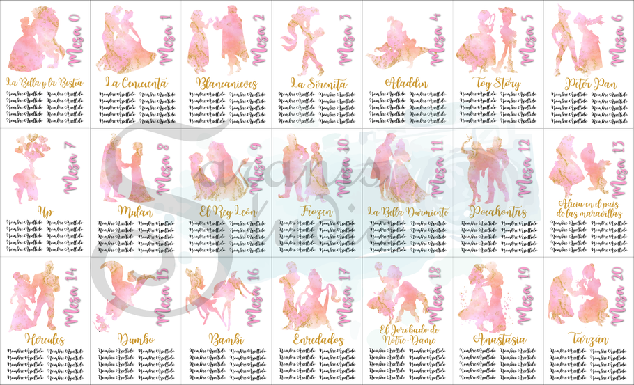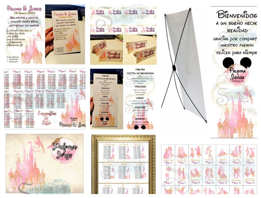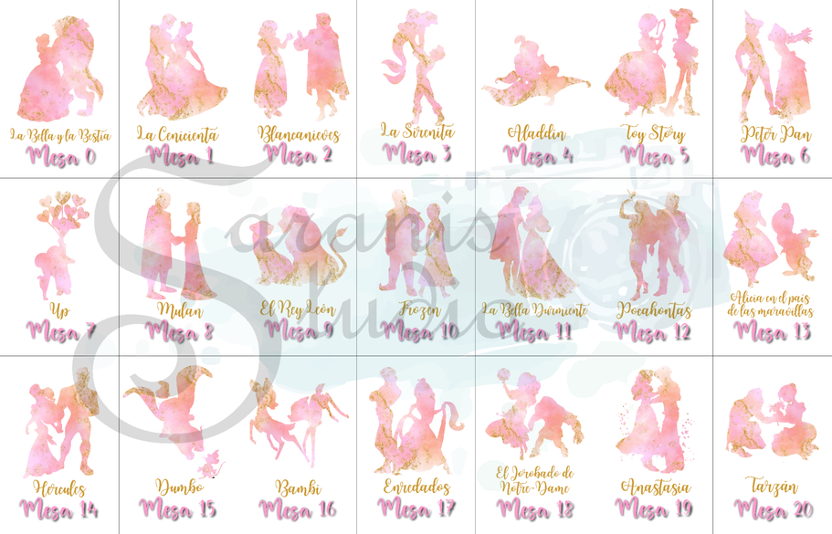 ¡Tu boda al estilo de Disney! Con diseño personalizado del "seating", Invitaciones, Nombres de mesa, Minutas del Menú, Carteles de Bienvenida, Sello de Boda y Nombres de invitados.