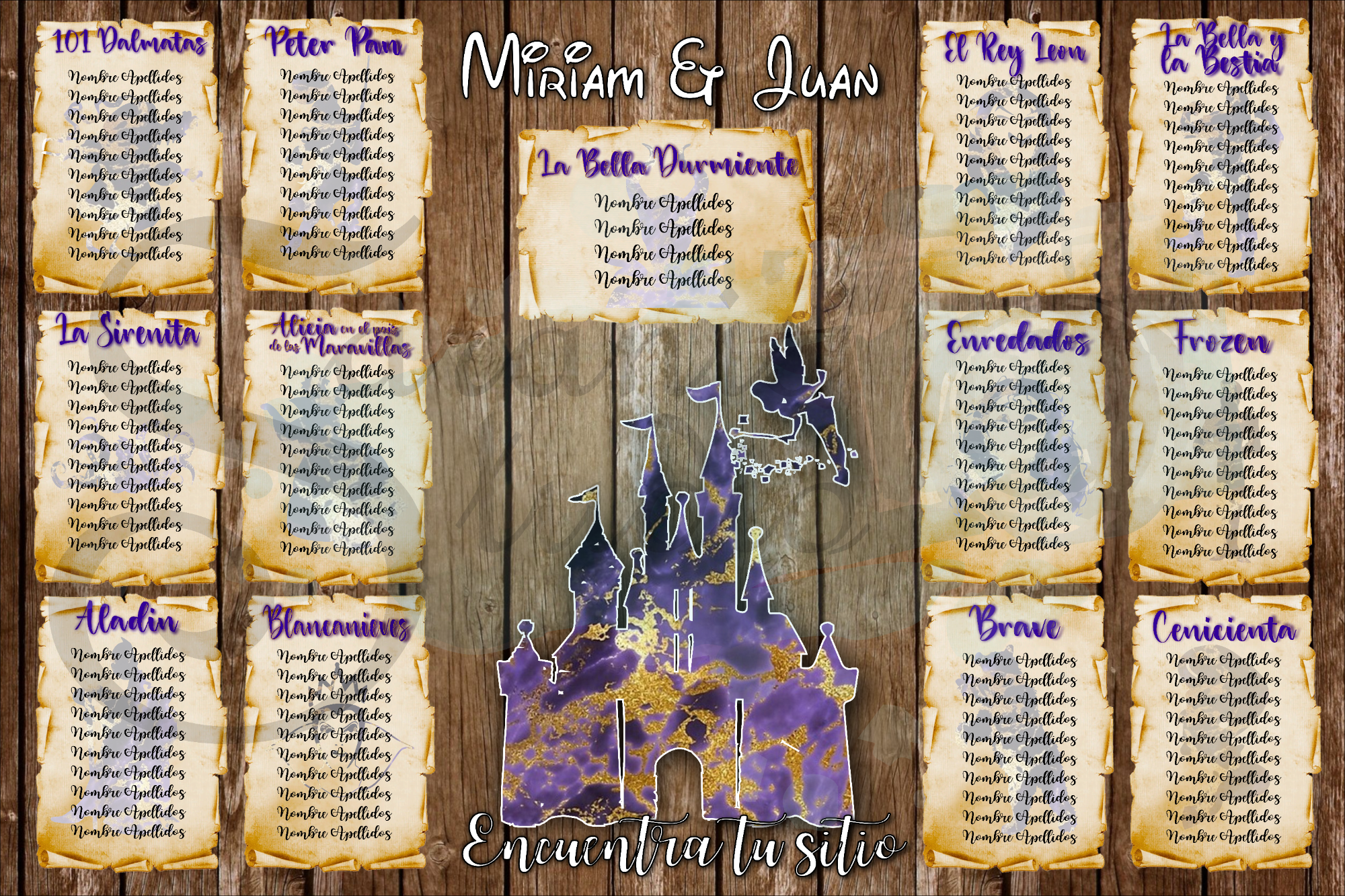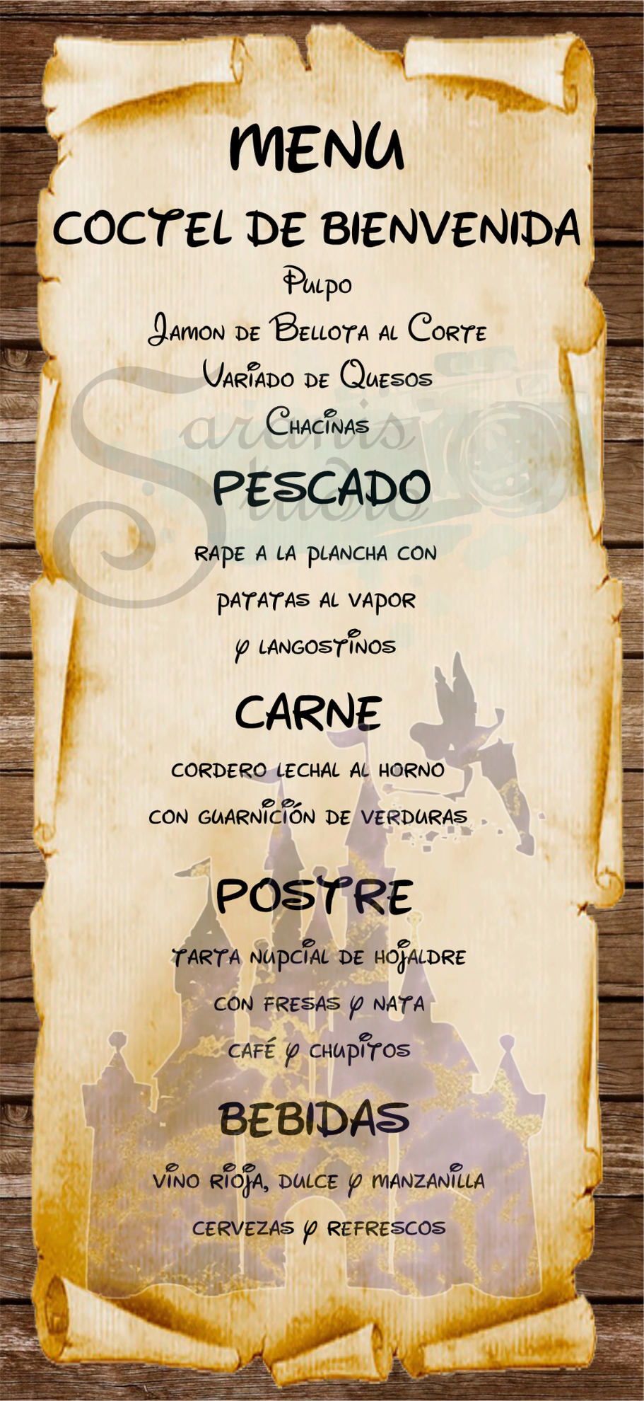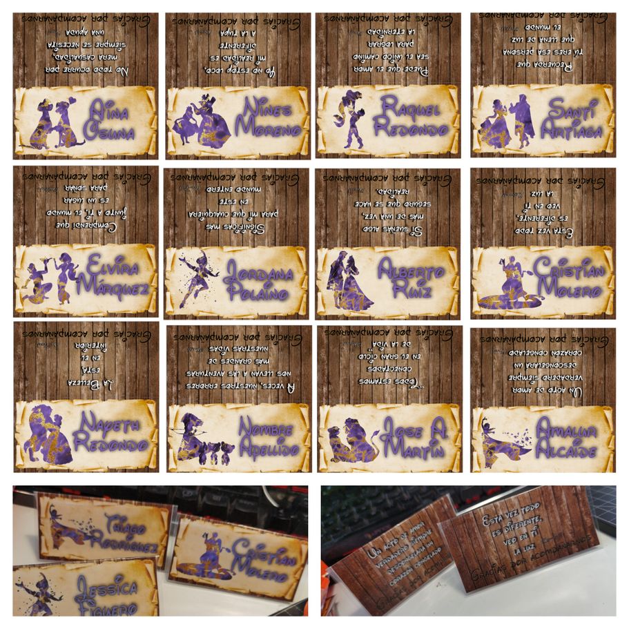 ¡Tu boda al estilo de Disney pero con tu toque personal más oscuro con los Villanos de las películas! Con diseño personalizado del "seating", Invitaciones, Nombres de mesa, Minutas del Menú, Carteles de Bienvenida, Sello de Boda y Nombres de invitados.