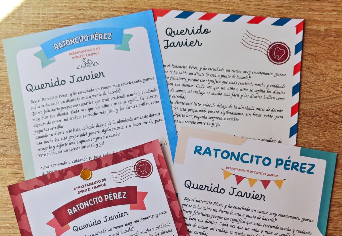 Y Cartas de Parte del Ratoncito Pérez, y el certificado de caída del primer diente.