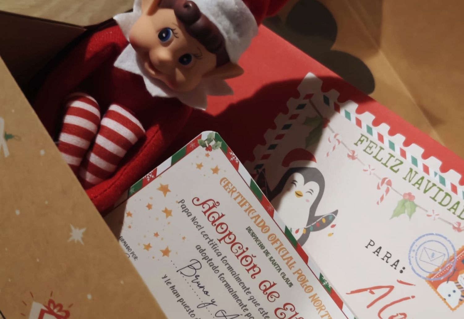 El Elfo travieso llega a tus casa con un certificado de adopción, la carta y certificado de parte de Santa Claus, una guía básica para los padres y un calendario de travesuras.