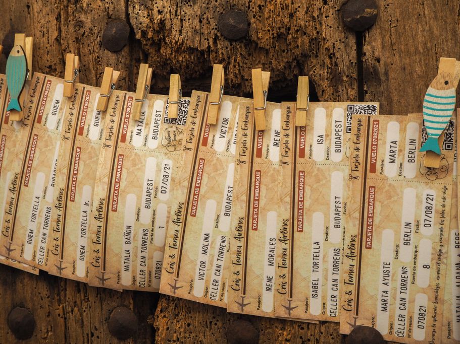 Además también les hice el diseño de seating de aeropuerto y los marcasitios como si fueran tarjetas de embarque.